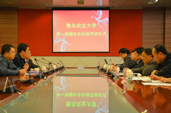 开班仪式在庄严肃穆的国歌中开幕。在致辞中,朱连勤代表学校向第一期“瀚生卓越农化班”顺利开班表示祝贺。朱处长首先介绍了学校、化学与药学院的学科和专业设置、师资、科研和发展特色等基本情况,同时,对青岛瀚生生物科技股份有限公司在我校开设农化班、探索校企合作新模式表示衷心感谢,并对参加本次“瀚生卓越农化班”的62名同学表示祝贺,同时寄予希望:一是希望同学们紧紧抓住企业家走进校园“传经送宝”的机会加强学习,二是紧紧抓住毕业前走进社会、走入企业锻炼的机会大胆实践,俗话说“师傅领进门,修行在个人”,是否掌握理论应用于实践的技能是大学生成功的关键,三是希望第一期瀚生班的学员能打好基础,开好局,结出硕果,成为学校与企业密切合作的桥梁和纽带。同时,他也希望学院通过开办“瀚生卓越农化班”,深入探索,积累经验,不断创新人才培养模式,多为社会和企业输送能够下得去、用得上、留得住的高素质复合型人才,希望青岛瀚生生物科技股份有限公司多对我校的学科建设、科技创新、人才培养等方面的工作提出宝贵的意见和建议。