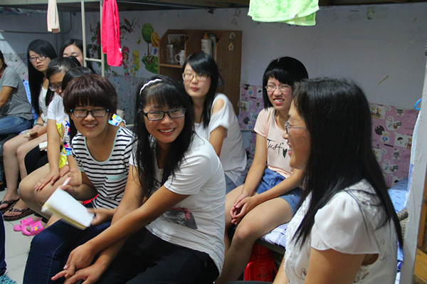 董风英老师是2014级应化专业一班的班主任,她每到一间宿舍都会仔细询问同学们在新环境下的生活状态,尤其对外地来求学的同学表示关心,询问他们对青岛这边气候的适应情况,同他们拉家常,嘱咐他们多多注意身体,更要好好锻炼身体,军训时期条件艰苦更应该照顾好自己。她对班里年仅15岁的王晓羽说:“虽然年纪小,但是有老师和同学的关怀和帮助,你一定会快乐地度过自己的大学生活,努力地充实自己,为自己书写多姿多彩的人生新篇章。”董风英特别嘱咐到:同学们要学会做人、学会学习、学会生活,同学之间要相互帮助,相互理解,她希望同学们能尽快适应大学生活,更好地进入角色。师生之间其乐融融,亲切的问候,温暖了新生的心灵,让他们感觉到了家的温暖,感受了学院领导、老师对他们的关怀。