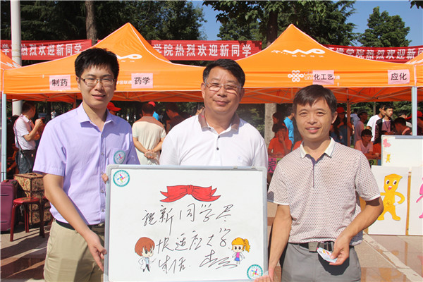 “祝同学们尽快适应大学生活!”校党委书记李宝笃莅临化药学院迎新现场,为新生题写寄语,简单朴实的话语中真情流露,蕴含着对新生满满的关爱。