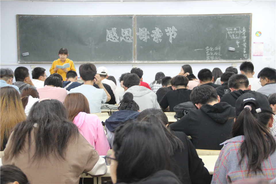 团课上,各班班长、团支书对母亲节的由来进行解读:在中国,母亲花是萱草花,又叫忘忧草;母亲节选定于孟母生孟子之日。制药工程1801团支书郭露月向同学们解释道:“在古时有不少诗人以萱草作为母亲的代称,如孟郊的游子诗:‘慈母依堂前,不见萱草花’,久而久之就将萱草花作为母亲花。而将孟子出生之日定为母亲节是为了让孩子明白,在庆祝自己生日的时候,不要忘记感激母亲,感谢母爱。”