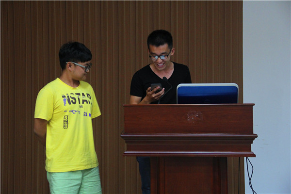 心理发展部部长陈超别样开场,带领新生说绕口令,“沟通从心开始”。