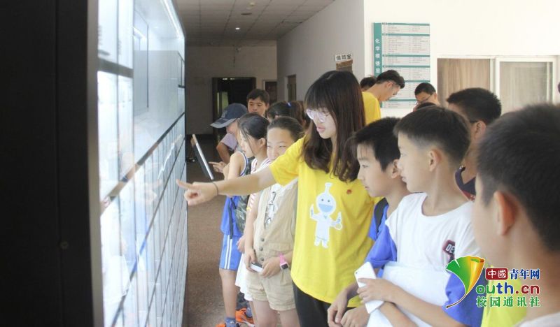 团队成员向小朋友介绍元素周期表。小朋友一双双求知的眼神,激发了队员们的教课热情。中国青年网通讯员 李雅雯 摄