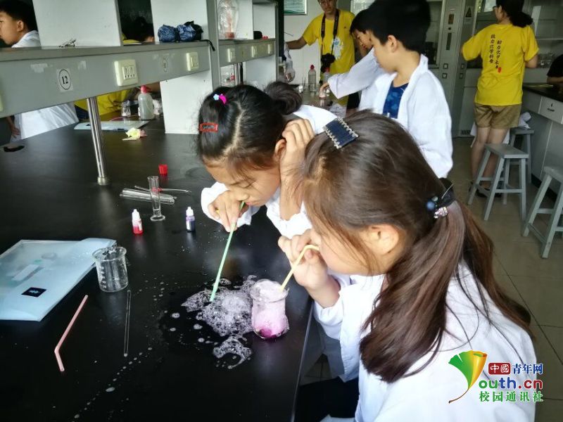 中国青年网青岛7月31日电(通讯员 李雅雯)7月12日,为拓展小学生课外知识,培养化学实验兴趣爱好,青岛农业大学“锌”火相传实践队为学生展开了为期五天的实验教学活动。实践队主要以实验课堂、团体辅导的方式开展。