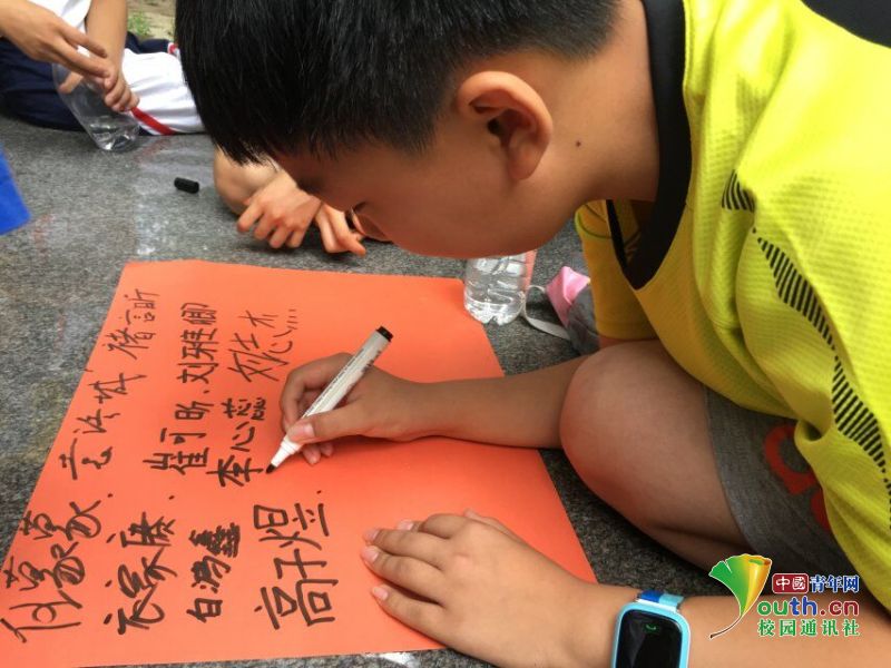 小朋友进行小组口号创作成果展示。中国青年网通讯员 李雅雯 摄