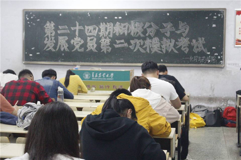 5月16日,青岛农业大学化学与药学院于教学区开展第二十四期入党积极分子与发展党员第二次模拟考试。此次考试由党工部成员监考,院入党积极分子及拟发展党员参加。