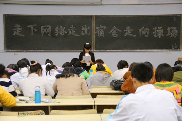 学院通过主题班会、政治学习、座谈会等多种形式开展“三走”活动的主题教育,大力培养社会主义核心价值观,营造学院新风气。班主任通过主题班会,向学生传达“三走”号召,呼吁同学们积极参加活动,告别网络,走出宿舍,走向操场,争做阳光健康的大学生。各专业班长书记则通过政治学习的机会,与班内同学讨论活动意见,并听取优秀活动方案,为“三走”活动出谋划策。全院鼓励并要求学生干部、学生党员、入党积极分子发挥模范带头作用,带头参与体育锻炼。