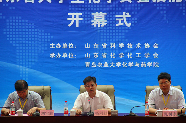 在青岛农业大学学术会馆举行的开幕式上,青岛农大副校长杨同毅致辞,介绍了青岛农业大学化学与药学院的有关情况。他指出,大学生化学实验技能竞赛是山东省规格高、专业性强、参与院校较多的重要赛事。本次大赛在青岛农大举办,不仅是对学校实验教学工作的信任、鼓舞和鞭策,同时也为青岛农大向各兄弟院校学习提供了一次难得的机会。