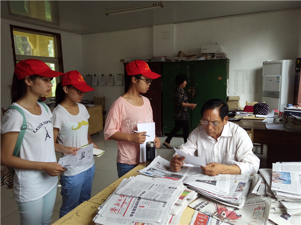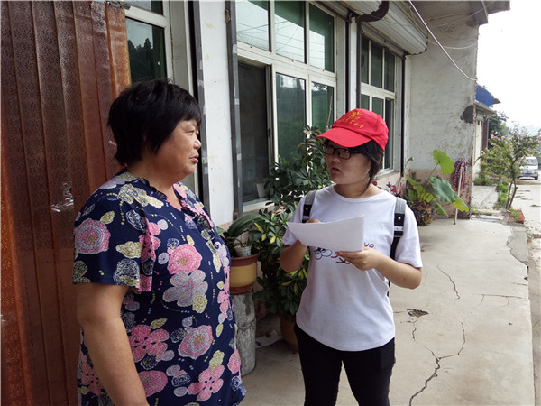 17日开始到19日,全体队员开始进行对当地农民的问卷调查活动。经过了首日的降雨,气温逐渐开始回升,接近中午,逼近35度的高温,队员们汗流浃背,手上的问卷都被滴下的汗水沾染上了湿迹,旅途劳顿加上闷热的天气让他们倍感煎熬,但却没有消磨他们继续努力下去的意志、“路过当地的田间,看到农民们因为条件限制在地里用普通的工具从早到晚锄地,我们仅仅在这里调研几天,又有什么理由因为天气热和劳累就不干活呢?”实践队员牛悦用帽子掀下一把汗水,乐观的说道。从朝阳升起到虹霞落幕,7名女生完全没有展现过娇贵的气质,同男同胞一起挥洒汗水,撑着麻木的双腿圆满的完成了事先拟定的问卷任务。