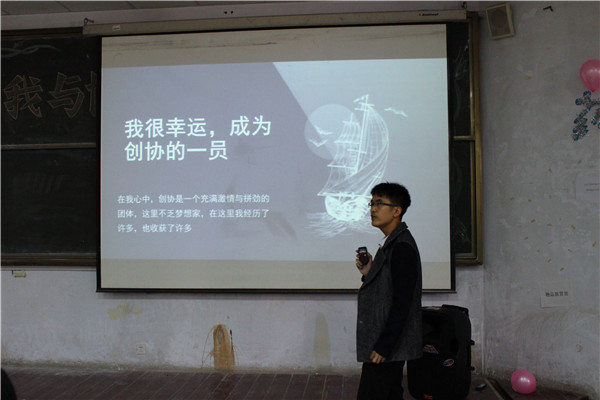乒乓球协会会长王旗向大家分享他与协会的故事,并展示他们在乒乓球比赛中付出的艰辛与斩获的荣誉。“从青春懵懂到坦率从容,在这个团体中,我们的精彩不在于荣誉,而在于训练与比赛的每个过程。”王旗说道。