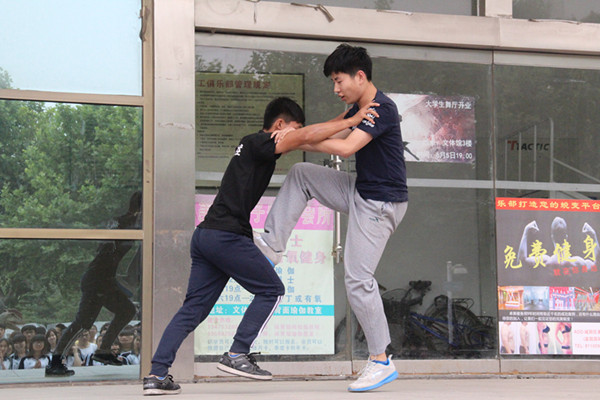 6月17日,化学与药学院在文体馆前开展女子防身术培训活动,旨在提高学院女同学安全防范意识以及应对危险的能力。活动特邀校梅花桩协会成员担任教练,14级全体同学积极参与其中。