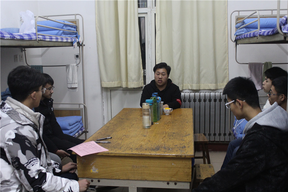 学院13名党员走进18级学生宿舍,针对学校发展党员工作的流程及学生学习、生活等方面的问题进行讲解。“大学期间仍是以学习为重,评奖评优都要有学习成绩作支撑,入党亦是如此,只有达到两次三好评优及以上才有机会成为入党积极分子。”学生党员王鹏说道。针对入党问题,王鹏向同学们讲解人际交往能力对入党的重要性,有一个良好的群众形象,有助于各方面的发展,大学生的交往圈不能仅限于宿舍、班级,要积极参加学生会、社团等组织,全面提升个人能力。