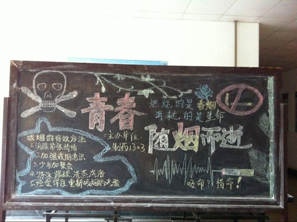 自5月30日起,化药烟头清扫志愿服务队便开始行动在校园内烟头相对较多的区域展开志愿清扫烟头活动。同时,院会宣传部通过制作“无烟校园,你我行动”宣传栏、在化学楼前摆放“青春,随烟而逝”警醒黑板报,向在校大学生宣传学校的禁烟规定和吸烟有害健康的知识,并呼吁大家积极参与到烟头清扫志愿服务活动中来,在在全校范围内展开禁烟活动做好了充足的宣传与动员。
