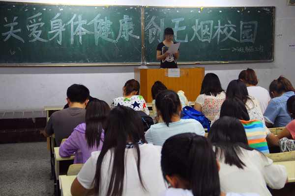 6月8日晚,在第27个“世界无烟日”之际,为贯彻落实学校禁烟工作的相关要求,切实做好禁烟活动,学院各专业班级在教学区开展“关爱身体健康,创建无烟校园”的主题政治学习活动。此次政治学习围绕学工部《关于在全校学生中禁止吸烟的实施意见》、世界无烟日的由来、吸烟危害及拒绝吸烟倡议书的签名四部分展开,意在倡导同学们关爱身体健康,创建无烟校园。活动由各班级团支书主持,其向同学们宣读了学校文件内容、介绍世界无烟日的来历及自1989年确立起至今的历史和主题,丰富了同学们对无烟日的了解和认识。随后详细讲述了香烟的成分、吸烟的短期作用、长期影响及吸烟引起的疾病等相关知识,同学们也提出许多戒烟小常识和各种疾病的预防方法等。同时,本次主题班会还着重强调吸烟不仅有害身体健康,而且极易引发校园火灾,尤其是宿舍火灾不容忽视。最后,班全体同学宣读了“拒绝吸烟,创无烟校园”的倡议书,同时在倡议书上签名,表明自己远离香烟的决心。在此期间,各班级也充分利用班级微博、微信平台发出“关爱身体健康、创无烟校园”的微倡议,提醒和劝诫周围吸烟的同学戒烟,让更多的人远离烟草,努力成为校园禁烟使者。