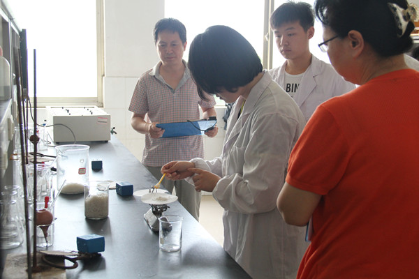 本次比赛为现场操作实验,其中操作实验主要考察学生正确规范使用仪器和药品,正确操作过程,取得正确的实验数据,正确记录、处理数据和表达实验结果等。参加复赛的选手通过抽签的方式被分配到316和520两个实验室分别进行“碳酸钠的制备和分析”和“乙酰苯胺的制备”的实验。上午八点,专业组和非专业组的同学已在实验室准备就绪,老师讲解实验注意事项后,监考老师到达指定位置,竞赛正式开始。从洗刷仪器到安装实验装置,从实验操作到形成结果,实验都在有条不紊地进行着,监考老师们本着对学生负责的态度,仔细观看选手们的班做实验,作到公平公正。临近两点,两个实验全部结束。