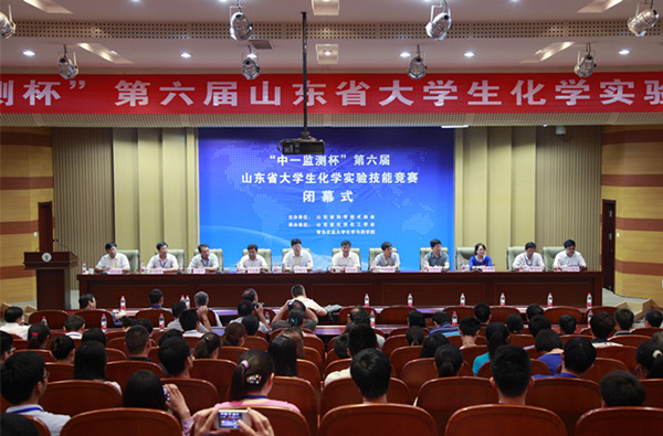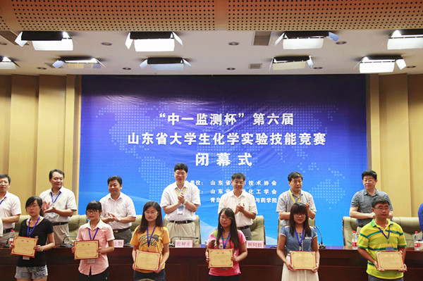 山东省化学化工学会副理事长、秘书长刘宝胜在闭幕式上讲话。刘宝胜对我校的承办及各个学校的积极参与表示感谢,对青岛中一监测公司对教育事业的赞助和支持表示感谢。刘宝胜指出,化学实验技能竞赛是山东省大学生科技竞赛的重要赛事,该项活动得到山东省科协、山东省化学化工学会的支持,更得到了山东省各高等院校和职业院校的大力支持,使得大赛各项活动办得有声有色,不断创新和发展,在此对各方的支持表示感谢,并宣布第七届山东省大学生化学实验技能竞赛将在中国石油大学举行。