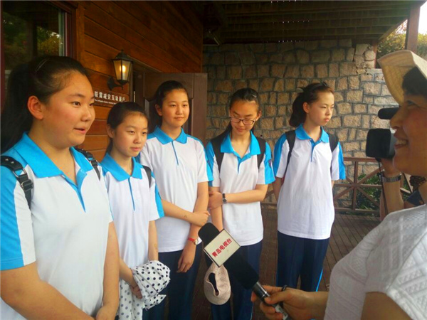 身着蓝色马甲衣,手持蓝黄标志旗,6月27日,化学与药学院阳光地震救援队赴防震减灾科普教育基地志愿宣讲,为青岛三十九中的五十余名中学生科普地震知识,青岛电视台全程跟踪,并对救援队成员及受教育中学生进行实时采访。