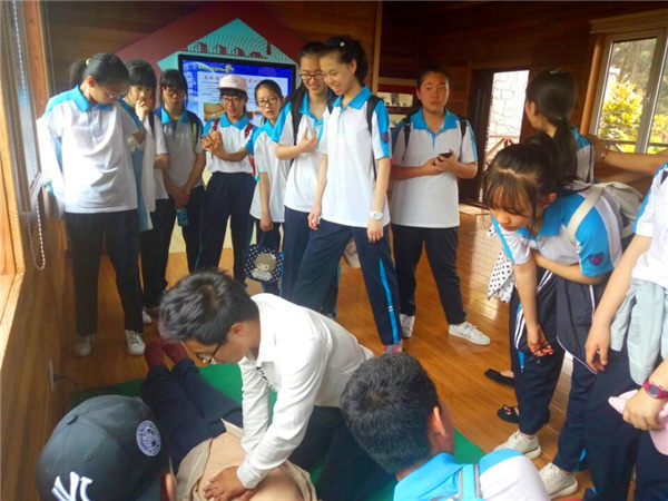 模拟实践教学中,救援队成员详细讲解缓降器的使用、心肺复苏救人法和结绳训练的该内容,保证每位参观者都能掌握必要的逃生救人法则,达到用科技体验灾害,用知识保护生命的目的。“好晃啊,头好晕”伴随着尖叫声,学生们体验六级地震发生时房子的晃动情况。在救援队指导下,学生们迅速打开门,关掉煤气、水、电的开关,找到安全的区域进行躲避。