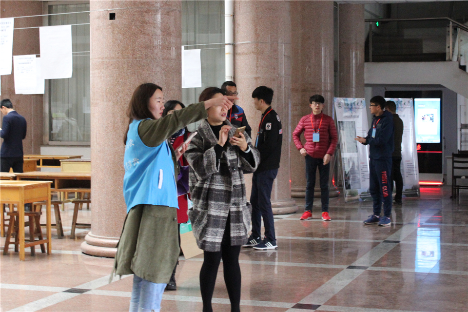 3月25日,青岛农业大学大型春季招聘会在文经楼、教学区、文体馆、图书馆和生物楼同时进行。校青年志愿者协会30名志愿者在青协副秘书长郭佳的带领下分布在各个会场服务本次招聘会。