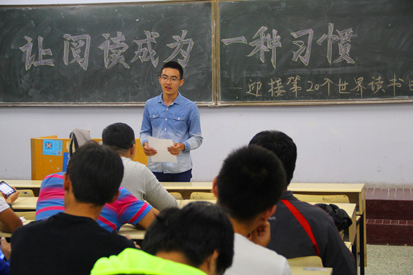 第20个世界读书日即将到来,4月26 日,化学与药学院在教学区开展题为“让阅读成为一种习惯”的政治学习活动。