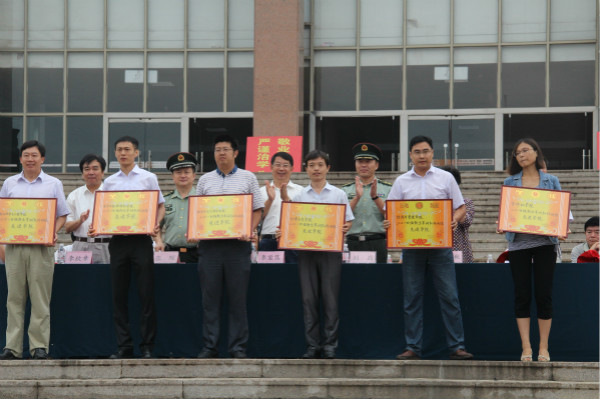 9月12日,2014级新生军训结业典礼在主楼前展开,化学与药学院新生方队凭借整齐的队列、规范的动作、洪亮的口号以及饱满的热情获队列训练先进学院荣誉称号,依靠整齐洁净的内务获内务训练先进学院荣誉称号。