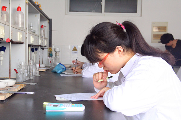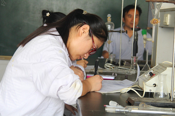 选手仔细记录实验数据。