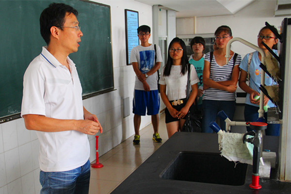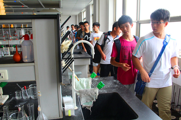 下午2:30,所有2014级新生在东苑3号楼前集合完毕,在各班班主任助理的带领下前往化学楼实验室进行参观学习。本次参观按专业分成6个小组,分批次进入实验室参观。与往年不同,今年带队参观者均邀请相关专业的授课教师带队,解决了往年存在的走马观花式的参观现象,加大了对学院科研设备、功能、用途等方面的介绍,而且针对学生感兴趣的仪器,教师还进行了简单的演示。