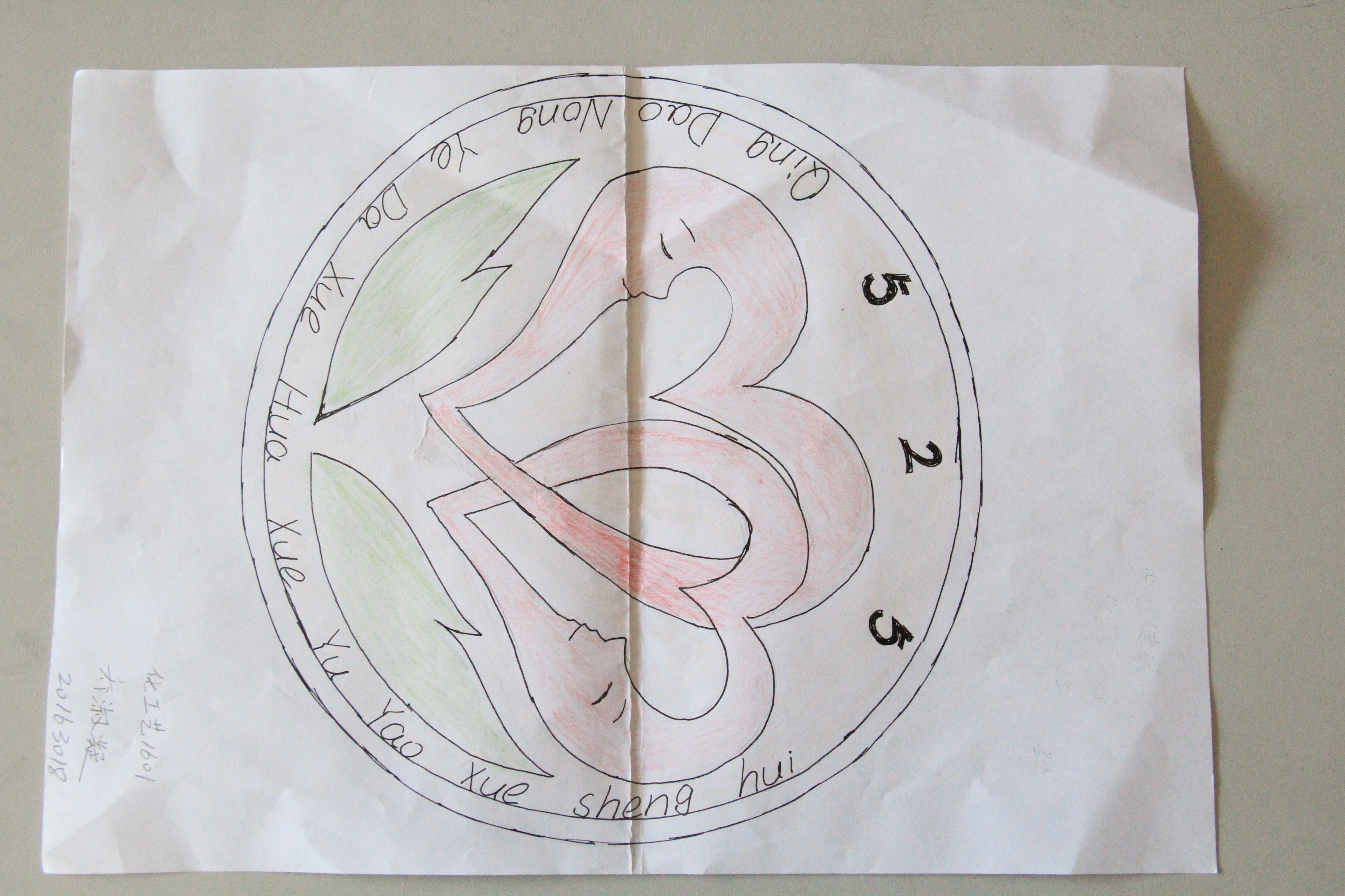 “心与心之间的沟通交流是帮助我们更好生活的重要方式,而积极向上的心态就像托举着的绿色叶片为我们的心理健康保驾护航。”化工艺1601班乔淑凝对她的作品介绍道。