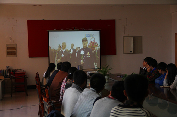 上午10时,在中央电视台的现场直播中,党和国家领导人和首都各界代表一起,在天安门广场人民英雄纪念碑前举行了庄严而隆重的“国家祭奠”活动。奏唱国歌、全体人员默哀、少先队员献唱队歌、全体人员向人民英雄鲜花……凉萧的秋风中,一个民族共同的灾难和荣耀被共同记忆。公祭活动在庄重、严肃的氛围下感染着在场的教师和同学。当纪念活动进行到为烈士默哀时,全体师生肃然起立,进行默哀。全体师生随着国歌、少先队队歌、献花曲都从内心里纷纷燃起了更强的敬畏感和庄严感,树立起从历史里获得前进的动力,从传统中汲取营养和滋补,弘扬爱国主义与和平发展的理念。