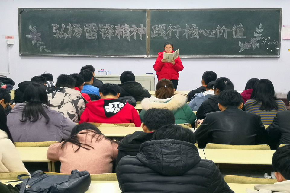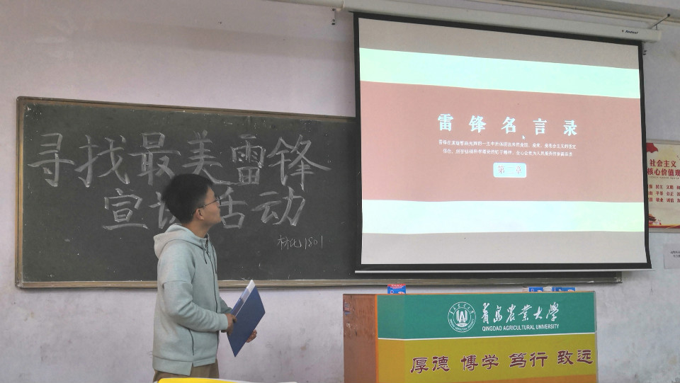 3月3日,青岛农业大学化学与药学院于教学区开展"弘扬雷锋精神、践行核心价值"主题教育活动,学院16、17、18级全体同学参加。