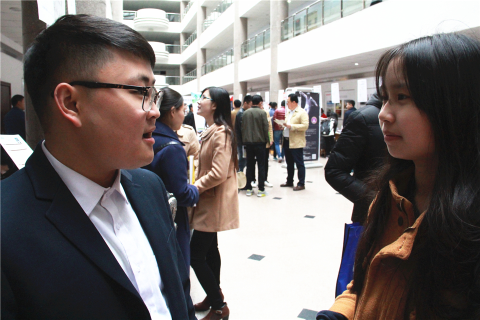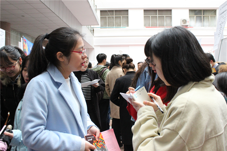 招聘会上,共有几千名应届毕业生前来应聘,他们衣着正式,简历制作精美,以最好的状态与企业进行交流,突出自己的专业技能与个人优势。17届毕业生刘海宁竞争的是药物研发岗位,她凭借自己的化学专业知识与实验技能以及敏锐的观察力和分析能力赢得了企业的青睐。毕业生们在与企业交流的过程中注重了解企业的文化背景、发展状况、员工福利以及能为毕业生提供的发展平台等信息,企业表示希望有更多优秀毕业生前来投递简历,并会对人才进行专门培养,为他们提供更好的发展平台。