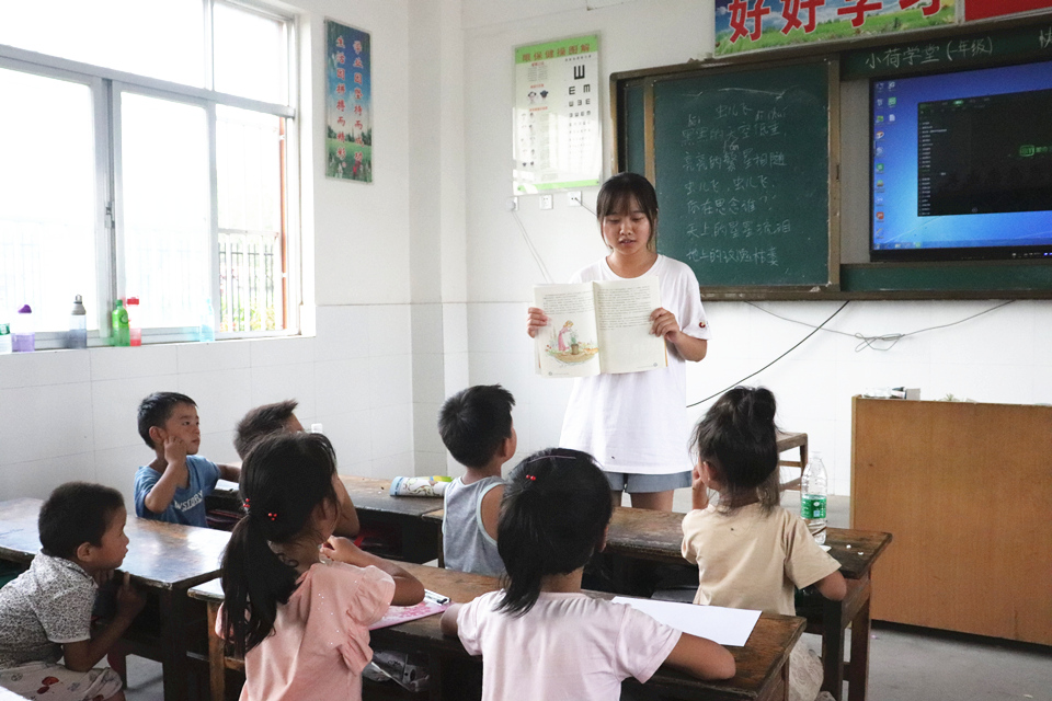 志愿者和孩子们一起读文学名著