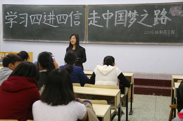 10月11日,化学与药学院于教学区召开了有关“四进四信”政治学习活动。活动旨在积极贯彻落实2015年首期高校团委书记习近平总书记系列重要讲话精神专题培训班中提出了“四进四信”要求。