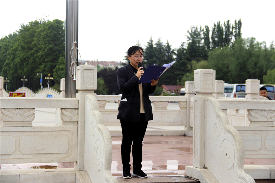 学校国旗护卫队队员迈着整齐有力的步伐将国旗护送到旗杆下,伴随着激昂的《义勇军进行曲》,鲜艳的五星红旗冉冉升空。在场人员全体肃立,行注目礼。随后,王海霞发表《携手化药,再创佳绩》讲话,她指出,化学与药学院自建院十余年来,全院师生秉承“不忘初心,牢记使命”,在学生考研、毕业生就业、大学生志愿服务、创新创业以及体育工作等方面取得不俗成绩。十年征程,硕果累累。王海霞强调“皮之不存,毛将焉附”,她说到身为化药学子要时刻将个人的成长与学院、专业的发展紧紧联系在一起,每位同学都要有与学院、专业共荣辱兴衰的觉悟。最后,王海霞表示,同学们要做有梦想、有责任、有担当的时代新青年,在化药学院这个大家庭中,与学院共创辉煌,不负青春韶华。