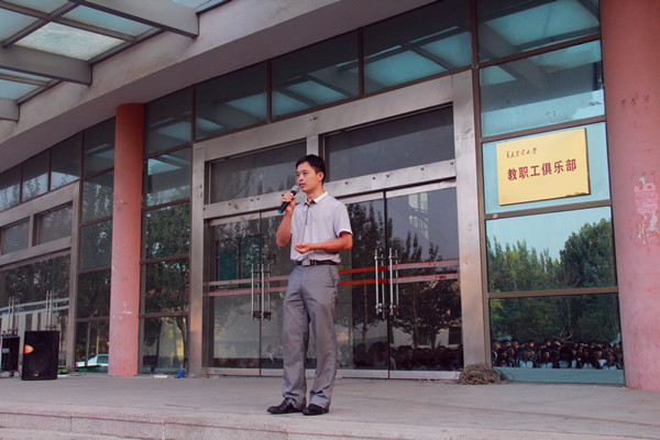 仪式开始,史雪辉就暑期开展的社会实践活动给予肯定的同时,也对新学期同学们在学习、生活等各方面提出了三点要求:一是要求学生加强体育锻炼,史雪辉说道:"身体是革命的本钱,同学们应该积极参加学院早操,把身体锻炼好。";二是要求学生积极调整好心态,做好收心工作,尽快把心思投入到学习当中去。做到不早退、不迟到、不玩手机、上课认真听讲、实验室服从安排;三是要求同学们注意宿舍安全,保持好宿舍的卫生和内务,养成良好的生活作息制度,以积极饱满的心态投入到新学期紧张的课程中去。
