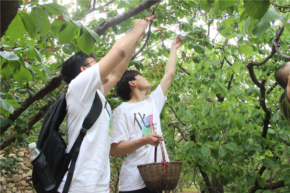志愿者们在公交公司的帮助下来到蜜蜂社区,并受到了老人的热情欢迎。同学们搀扶老人上山,老人耐心指导同学们采摘樱桃,告知他们采果的技巧,志愿者们有条不紊的开始了采摘工作。随后,志愿者们“兵分两路”,一队继续在山上采摘果实,另一队在山下陪伴老人售卖樱桃,经过大家的努力合作,老人当天成功出售了数千元樱桃,看着丰收的硕果,老人对志愿者表达了由衷的感谢。