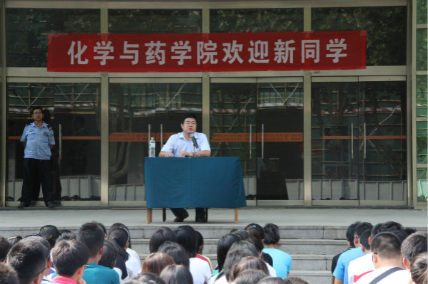 为扎实有效的开展2014级新生入学教育,引导新生树立科学的世界观、人生观和价值观,9月1日上午,化学与药学院组织全体新生在信息楼前开设了入学后的“第一课”---新生“理想信念”专题教育。学院党委副书记、副院长史雪辉做主题报告,2014届化药学院全体新生参加。