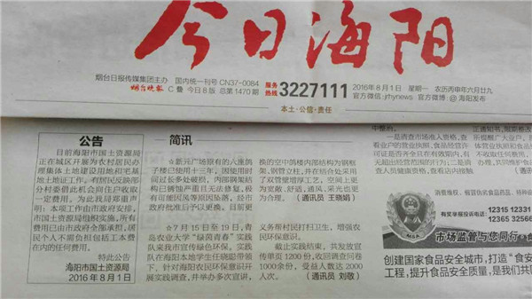 7月15日至19日,青岛农业大学“绿茵青春”实践队来我市宣传绿色环保。实践队在海阳本地学生任晓聪带领下,针对海阳农民环保意识开展实践调查,并举办多次宣讲,义务帮助村民打扫卫生,增强农民环保意识。