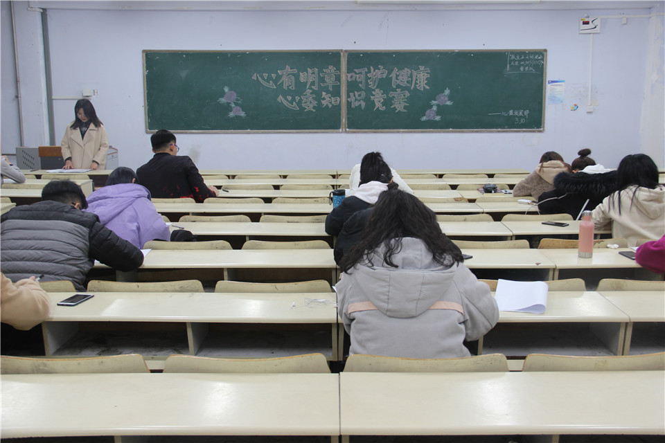 3月10日,青岛农业大学化学与药学院于教学区开展“心有明章,呵护健康”知识竞赛活动,学院2017级、2018级部分学生参加竞赛。本次考试采取统一命题、闭卷考试的形式,结合大学生学习生活实际,对心理健康知识、如何开展心理委员工作等方面进行检测,考察考生对心理健康知识认识的深刻程度及其表达能力。