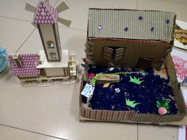 在网购迅速发展的今天,学校里的快递盒也开始多的数不清,不少同学们充分利用这一资源,用开拓的思维进行了手工品的制作。其中,制药1501班121宿舍以舍友理想中的房屋为灵感,用废旧的快递盒子制作了心中最温暖的家。