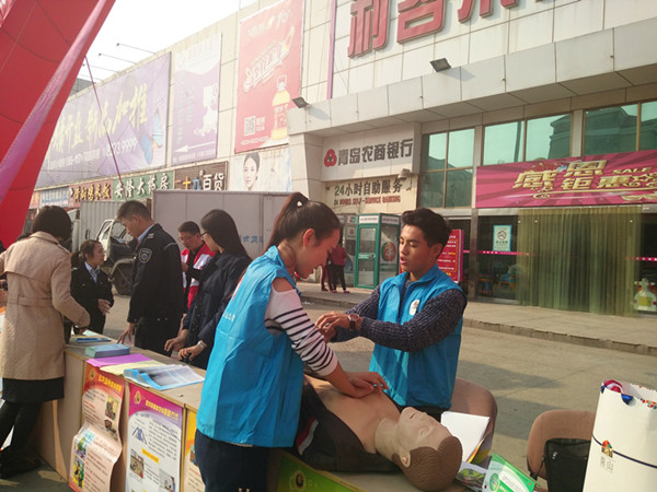 活动期间,青岛农业大学化药学院阳光地震救援队志愿者代表付恩羽和刘先聪在活动现场设立布置好咨询台并发放宣传资料,向市民讲授地震前兆、地震灾害以及地震时如何自救互救等知识。活动当天正赶上大幅降温天气,但是市民依然热情高涨,活动现场,簇拥的市民被地震救援队志愿者带来的防震减灾科普知识书籍和宣传挂图所吸引,纷纷驻足观看。