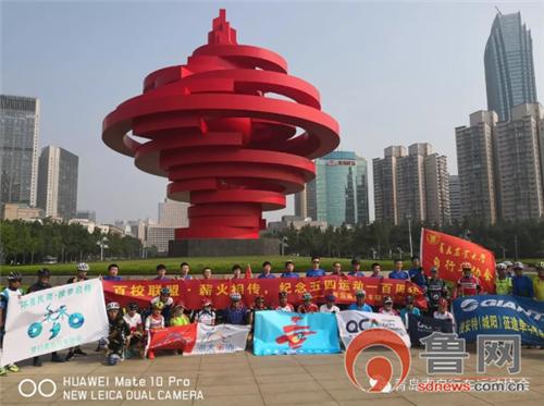 鲁网青岛7月16日讯(记者 孙晓文 通讯员 孙立) 2019年7月15日上午9时,由青岛市自行车运动协会高校单车联盟组织发起的“百校联盟、薪火相传”---纪念五四运动一百周年骑行活动在五四广场正式拉开帷幕,此次活动旨在弘扬五四青年运动精神,同时用实际行动积极践行低碳环保、绿色出行的理念。来自青岛理工大学、青岛农业大学、青岛科技大学、青岛大学、中国海洋大学和中国石油大学等高校的学生代表团共同参与了此次活动。