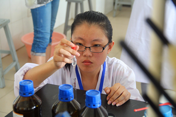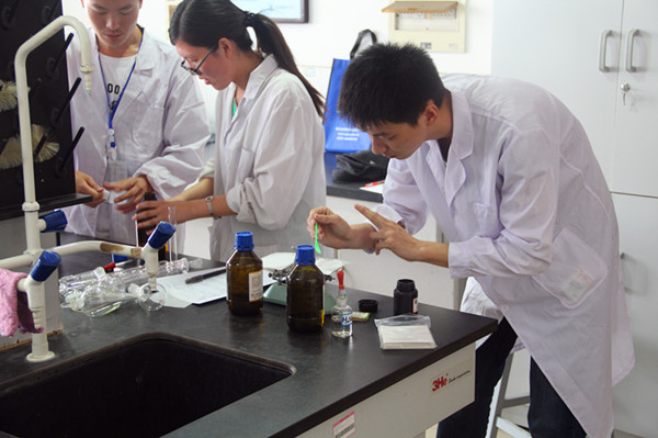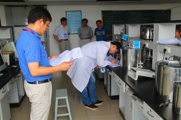 据悉本届竞赛共笔试和实验操作两个部分,其中笔试占总分的30%,实验操作占总分的70%。试题涉及无机化学、分析化学、有机化学、物理化学四门课程,针对参赛选手的基础知识、基本技能、综合试验能力和科学素质进行考察。为使竞赛达到公平、公正、合理,大赛共有40余位专业教师参与监考,平均每位老师监考3名学生,组委会对实验监考老师进行了遴选和培训工作,制定了明确的实验监考教师注意事项和详尽的实验评分标准。