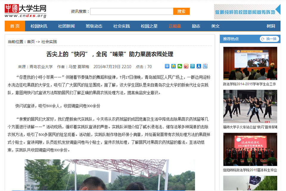 中国大学生网:舌尖上的“快闪”,全民“啃菜”助力果蔬农残处理