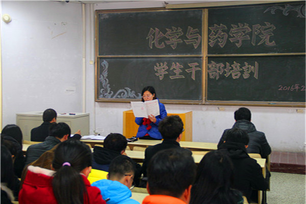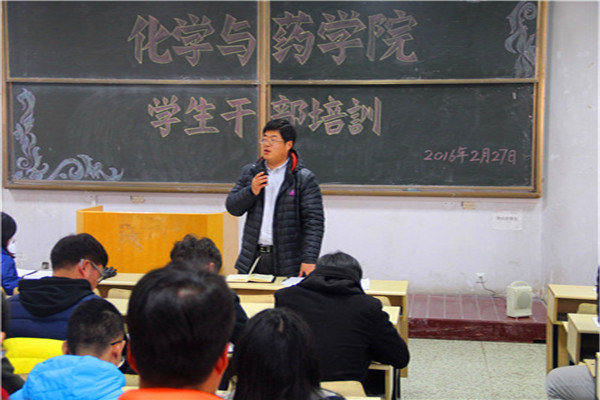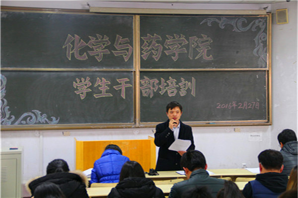 2月27日,化学与药学院于教学区举行新学期学生干部培训会,学院党委副书记史雪辉、正科级辅导员田保玲、团委副书记杨冬冬出席会议,各班班长、书记以及学生会全体成员参加,会议由史雪辉主持。