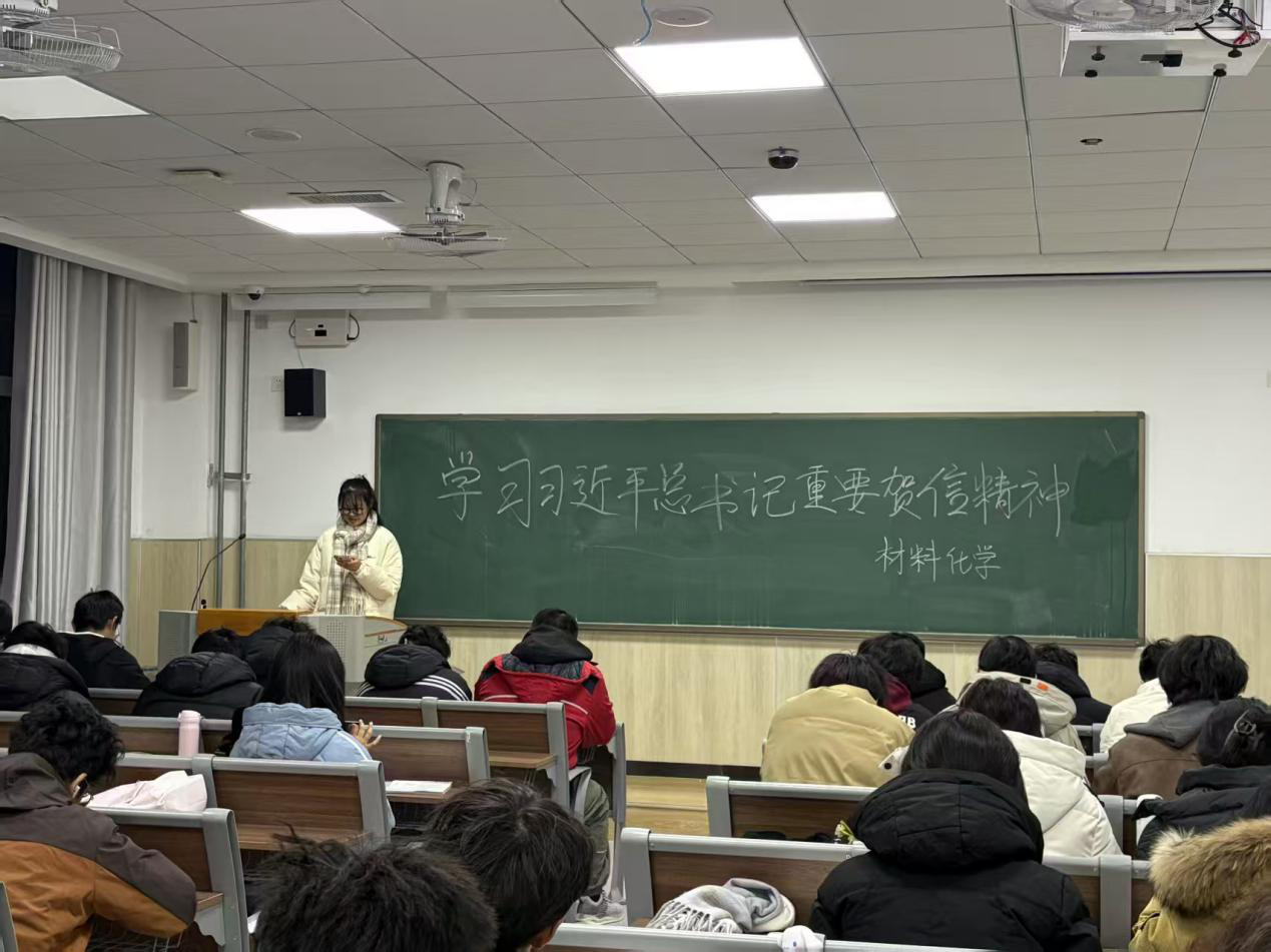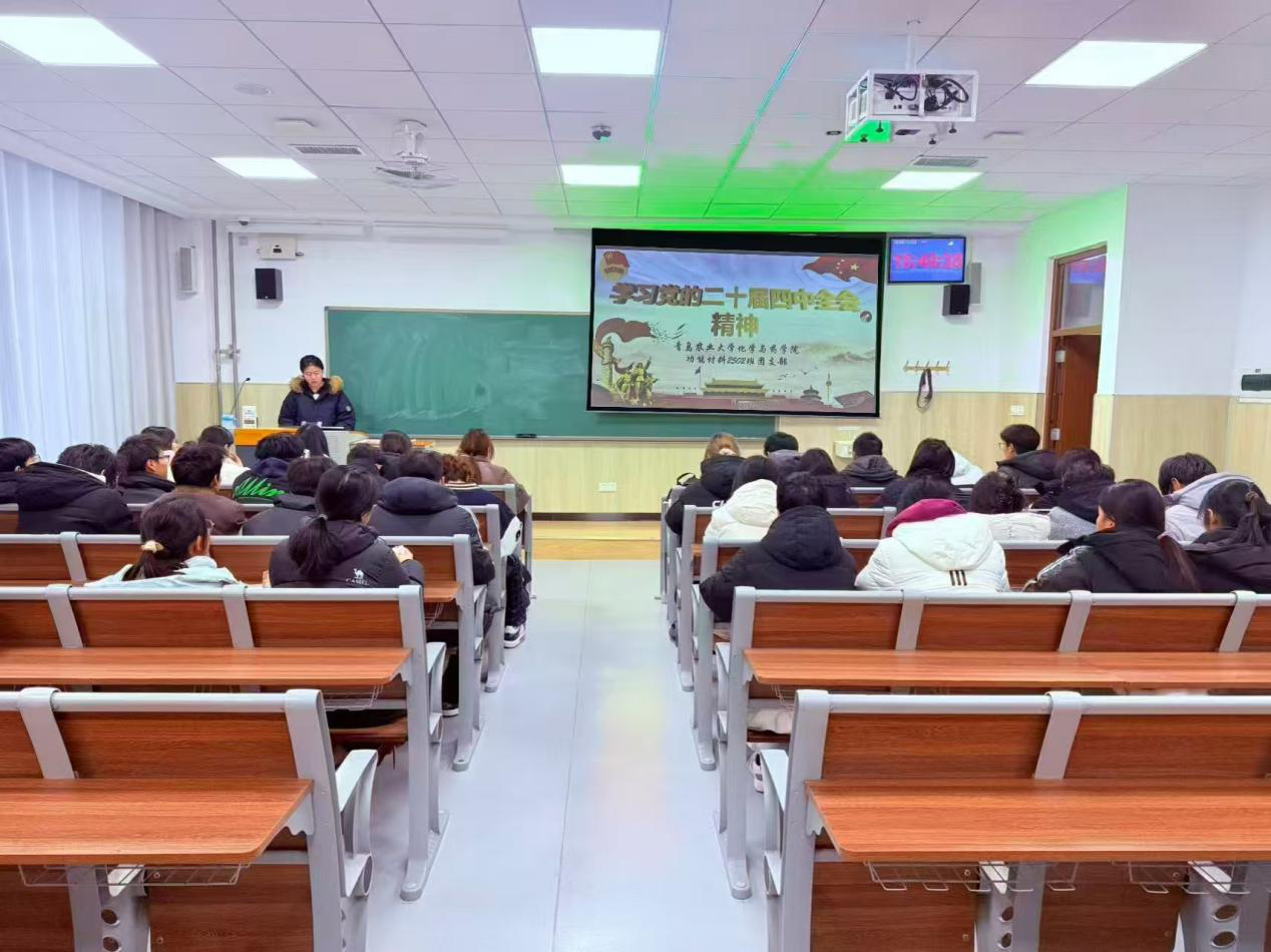 自主策划显特色,让理论学习“活”起来。各团支部积极转变学习模式,突破传统集中宣讲的单一形式,结合青年学生特点与学科专业实际,自主设计学习方案,增强学习的吸引力和实效性。组织团员原原本本研读习近平总书记的重要贺信及党的二十届四中全会公报,重点围绕“青年担当作为”“‘十五五’时期经济社会发展主要目标”等核心内容开展学习;同时紧扣“高水平科技自立自强”“建设现代化产业体系”等重大战略部署,将理论学习与化学、药学领域发展紧密结合,增强学习的方向性、针对性与实效性。