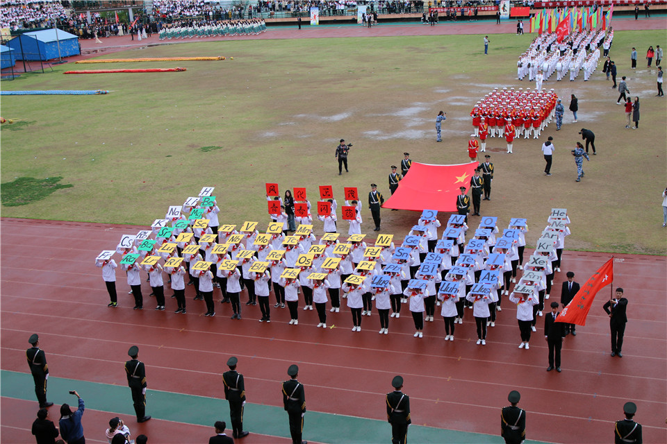 本次化药学院方阵以“元素周期表”为主题,以此纪念俄罗斯化学家门捷列夫发现元素周期律并编制出元素周期表150周年,展现化药学院特色。开幕式上,方阵成员步伐掷地有声,整齐划一,当“元素周期表”展现在大家面前时,现场观众掌声雷动,喝彩声震耳欲聋。