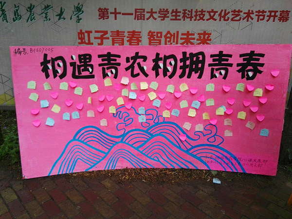 在三号楼前的摊位旁,“能量阳光墙”活动进展得如火如荼。学生用“心意便利贴”写下自己想要分享的话语,贴到活动宣传展板上,乐趣、祝福、心愿、鼓励的话居多,“通过这种方式让更多的人分享心声、留住快乐、相互鼓励、打开心扉,感受正能量,享受生活的美好。”心理发展部部长陈超说道。