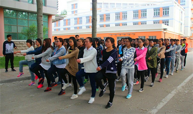 或轻盈娇柔,或潇洒帅气,生物楼内,为了整齐度、默契度,学院拉拉队坚持不懈地配合训练着。
