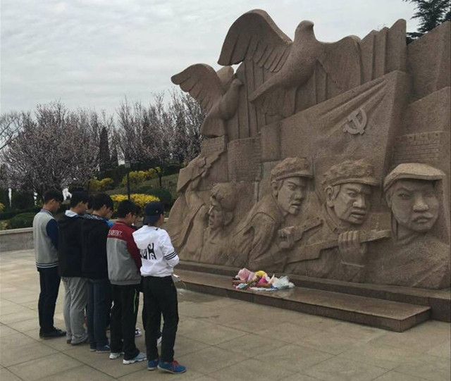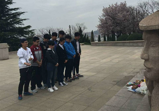 烈士陵园中安放着革命战争年代、抗美援朝时期的118名有名烈士和26名无名烈士,刘凯为大家讲述了这些革命烈士们的主要功绩,大家对革命烈士表示无比的敬佩。同学们到烈士墓前敬献鲜花并默哀三分钟,鞠躬致敬,以示追念。