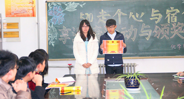 经过一个星期的综合考评,功能材料1501班沈希彬同学的作品点赞量、转发量和照片配合的默契度等综合因素优于其他参赛者,荣获一等奖。在颁奖仪式上,刘丹对他表示祝贺并为其颁奖,随后朱帅、范凯梅为荣获二、三等奖的获得者颁奖。